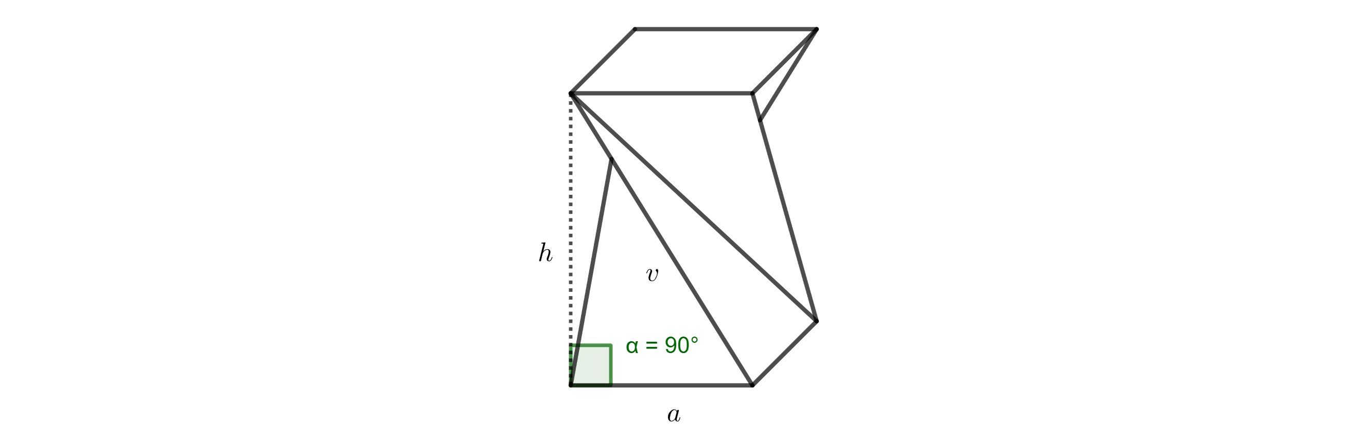 Solution. The original side edge of the prism with length \(v\), the desired stool height \(h\), and the base edge \(a\) form a right triangle. The edge \(a\) is the orthogonal projection of the edge \(v\) onto the plane of the base (see Figure 3).