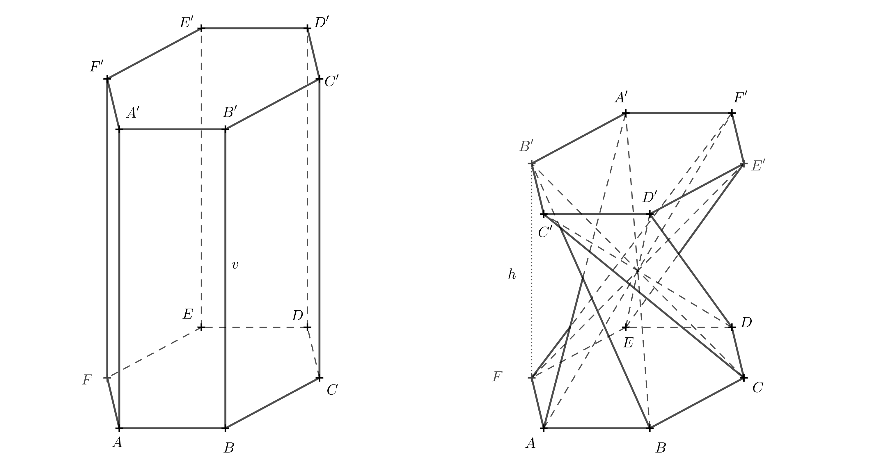 Exercise 2. How does the height \(h\) of a twisted hexagonal prism (created from a regular hexagonal prism) depend on the original prism height \(v\) and the side length \(a\) of the base?