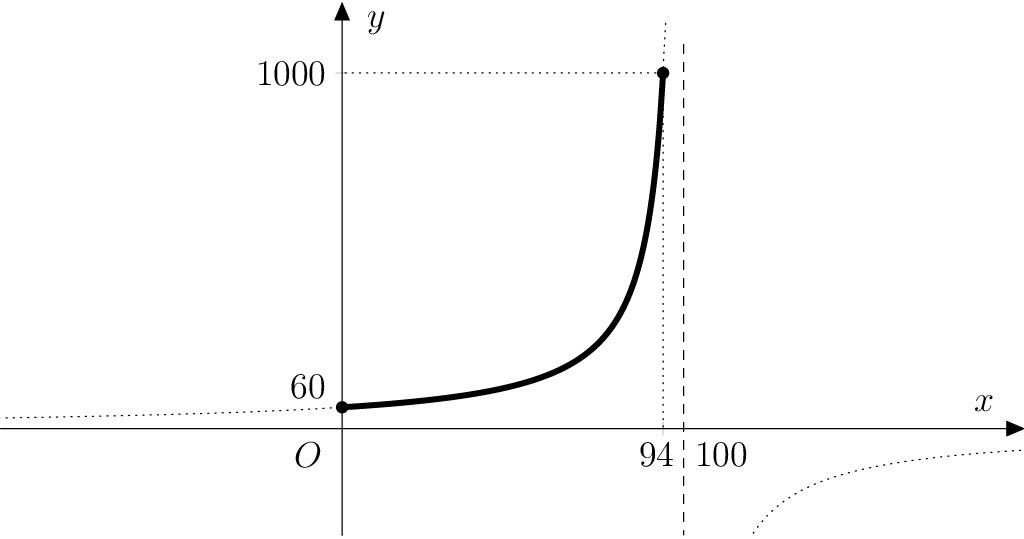\[ g\colon y = -\frac{6m}{x-100}. \tag{2} \]