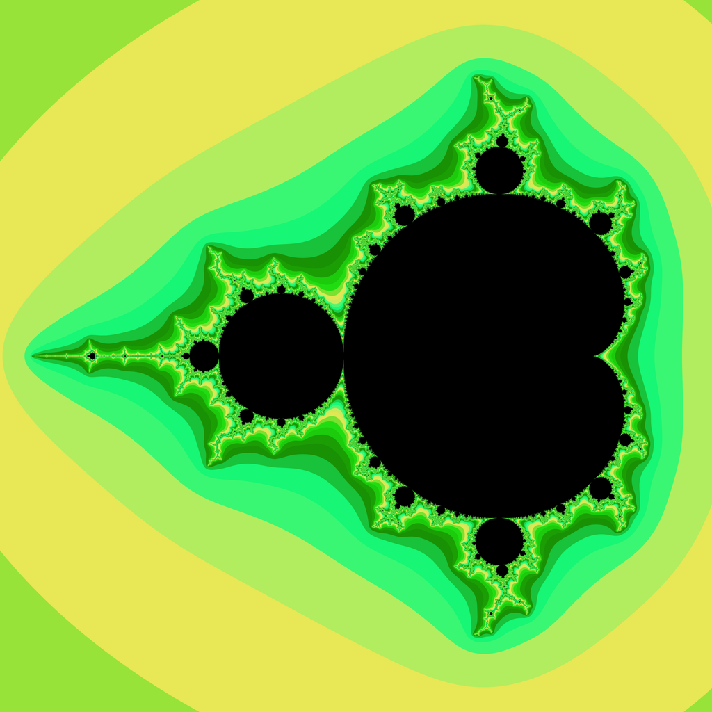 gdzie wartość początkowa wynosi \(z_0=0\), a \(c\) reprezentuje dowolną liczbę zespoloną. Francusko-amerykański matematyk Benoit Mandelbrot (1924–2010) był zainteresowany tym, kiedy sekwencja liczb utworzona w ten sposób jest ograniczona, tj. dla jakich wartości \(c\) w płaszczyźnie zespolonej sekwencja ta zbiega się lub oscyluje. Jeśli w pewnym momencie ciąg rozbiega się, chciał wiedzieć, jak szybko. Można udowodnić, że jeśli wartość bezwzględna dowolnego wyrazu ciągu \(z_{n}\) przekracza 2, to ciąg ten nie jest ograniczony.1029